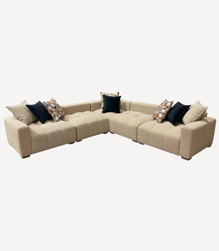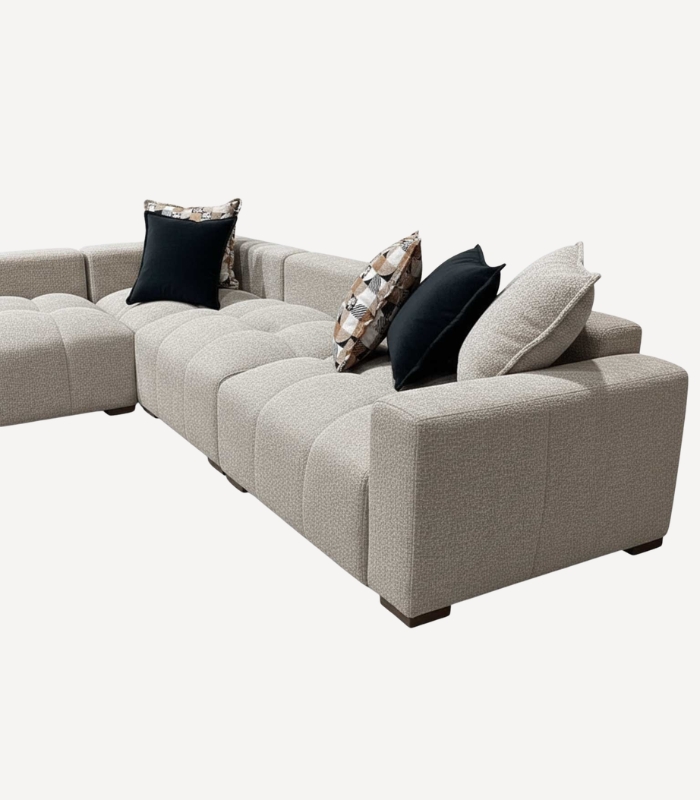 Son assise en mousse hautement élastique procure un maintien équilibré et un confort durable, idéal pour vos moments de détente quotidiens. Ses pieds bas discrets facilitent le déplacement du canapé tout en conservant une esthétique moderne et élégante. Pensé pour la vie de tous les jours, Raha associe esthétique contemporaine, confort et praticité, devenant ainsi la pièce centrale d’un salon à la fois chaleureux et sophistiqué.